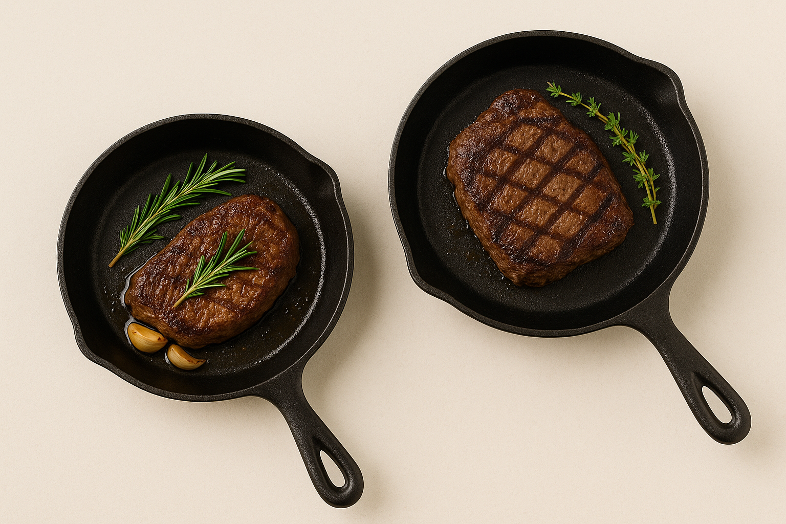 | Keptuvė | Nugarinė, files, šlaunikaulis | Aukšta (220-250°C) | 6-8 min. | Žema | Greitas, skanūs kraštai |